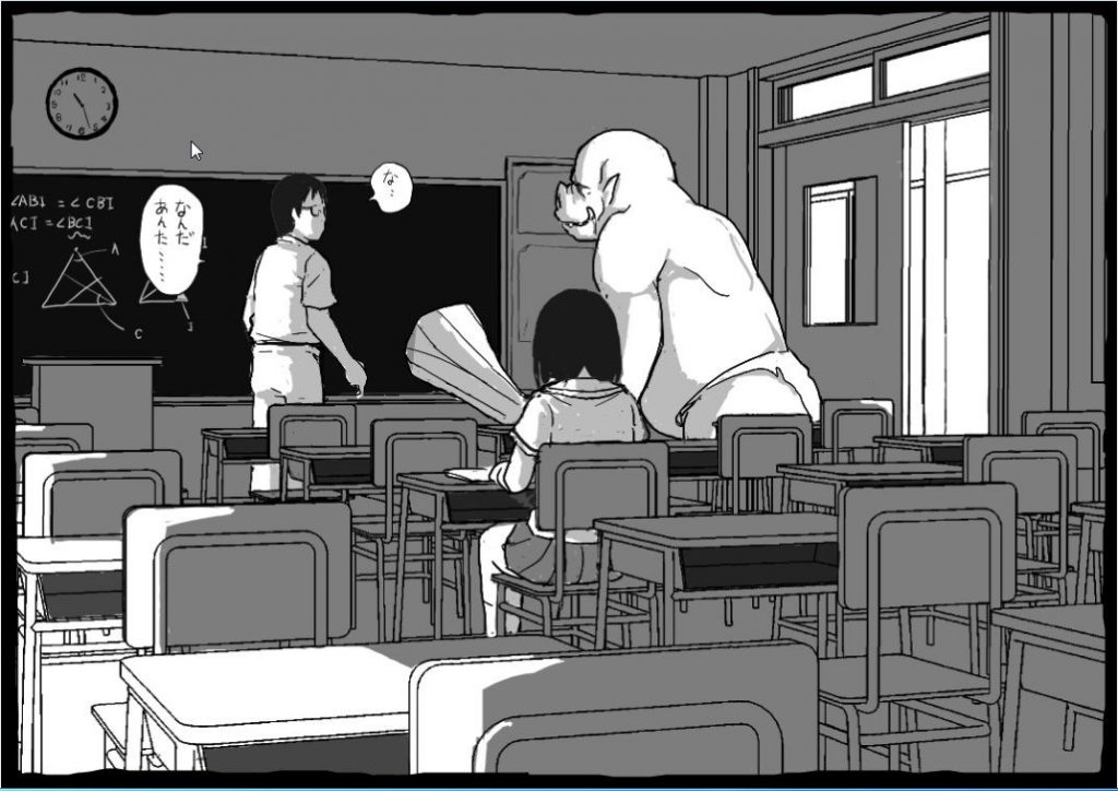 ストーリーは夏休みにの補講を受ける女の娘の前に、突如オークが現れた残っていた女子生徒を集め徹底的に犯す…といった感じ。