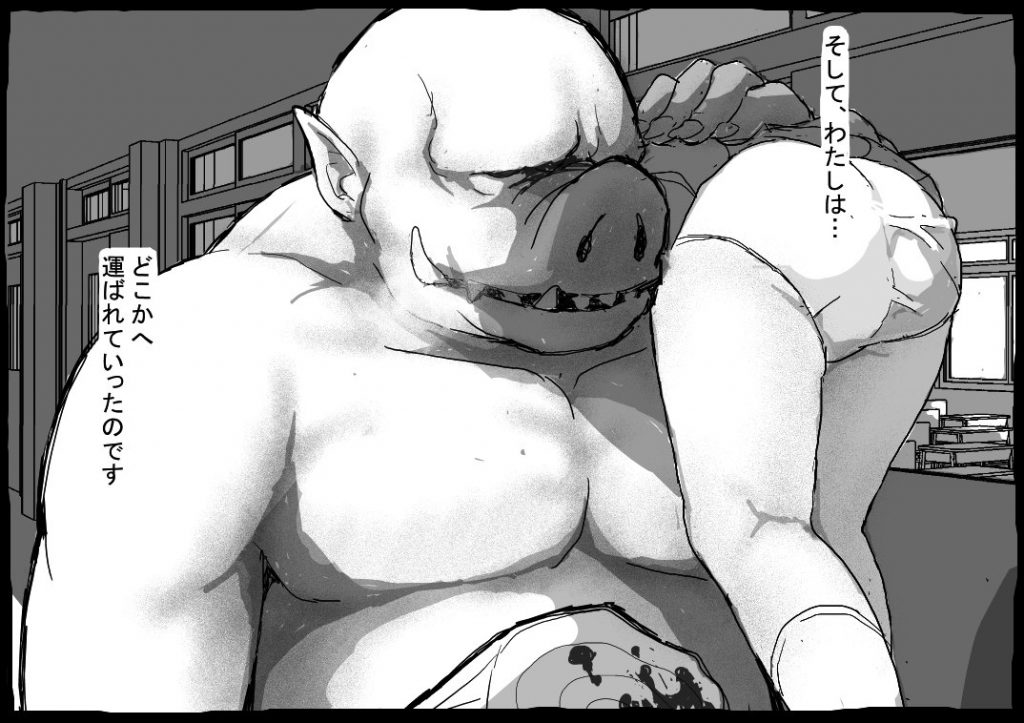 学校で補習を受けていたらいきなりオークが現れてオークに犯されるオーク姦コミック。