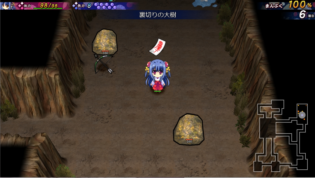 状態異常乱舞(鈍足や睡眠、サビ攻撃)や会心の一撃で一発200越えのダメージを与えてくる金槌坊がいるので厳しい部分はありますが、紫ちゃんが2マス先まで攻撃できたり技で転移が使えるアドもあるためトータルすると簡単~普通ぐらいになるかなぁと。