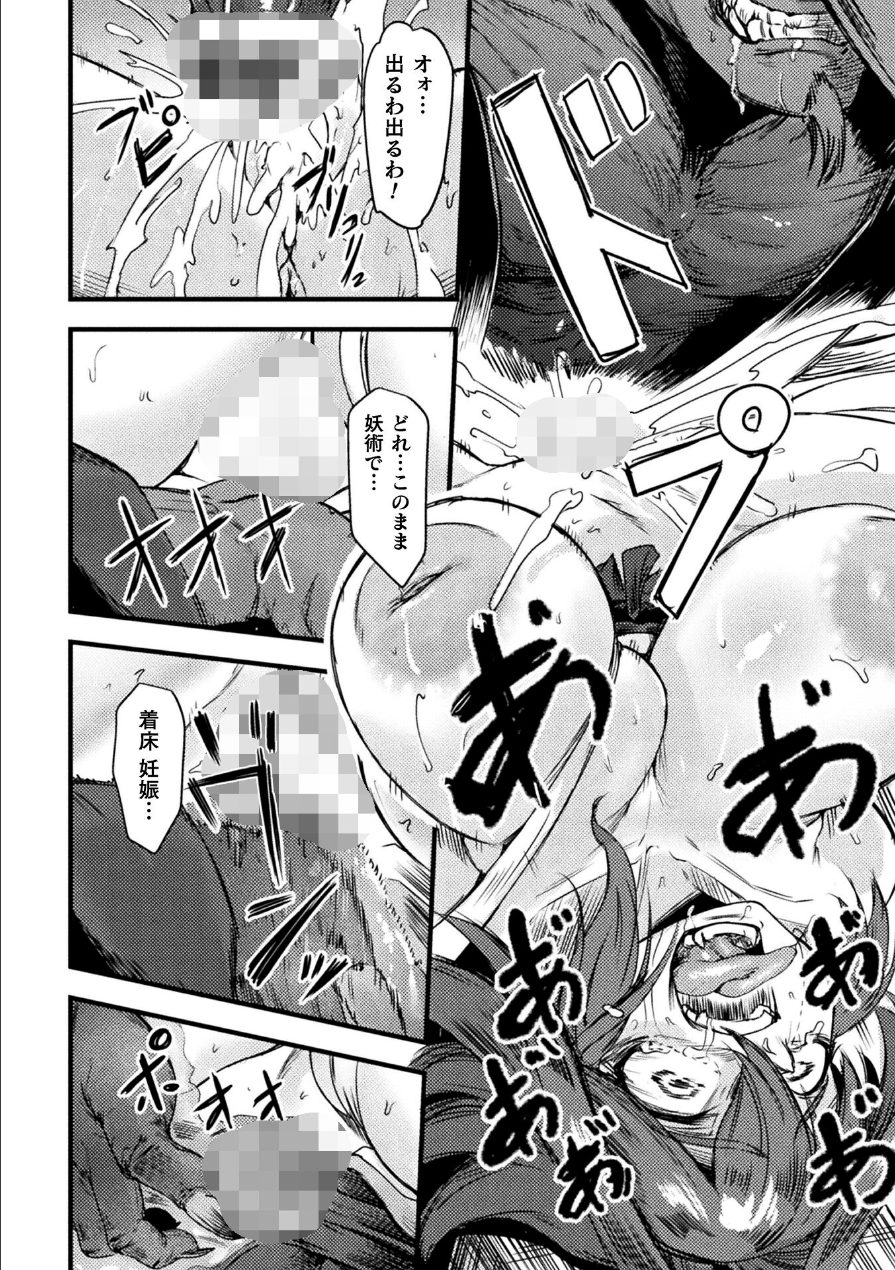 - 催眠状態でのプレイ。膝をついてご奉仕フェラ。その最中に子宮を妖術で改造される。その後バックで膣挿入され中出し。中出し後卵が胎内で育ち最後は産卵。母乳?吹き出し描写や卵が育ったことによる腹ぼこ的な描写あり。断面図あり。子宮脱描写あり。